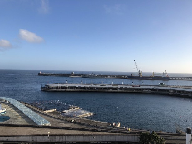 The view from the balcony was made more impressive by the huge cruise ship, docked in the harbour.