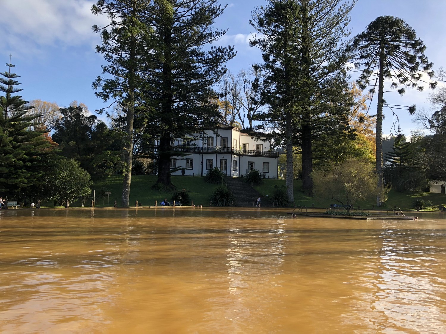 Terra Nostra is a stunningly beautiful botanical garden on São Miguel Island in The Azores. Visitors are invited to swim in a large thermal pool filled with volcanic water from the hot springs.