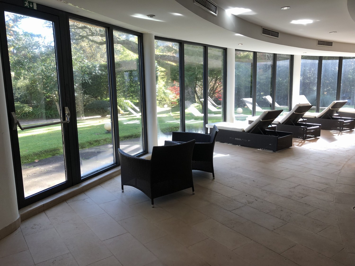 There was a nice terrace with a view to the gardens. It looks like first-floor rooms have a shared terrace with sunbeds.