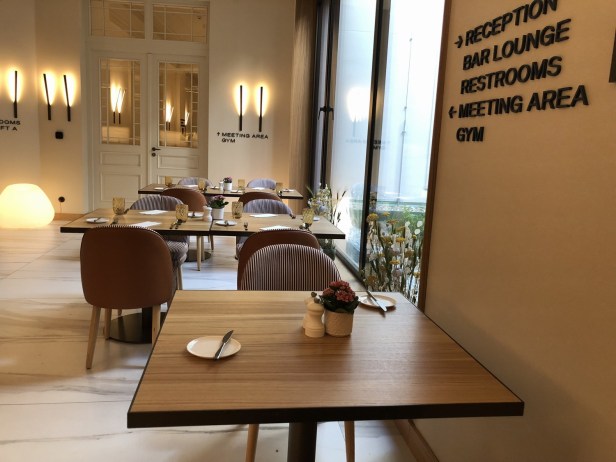 To find the Emporium Bistro, you need to enter the hotel, greet the receptionists with a polite dobrý den, walk straight ahead and turn left. There are larger tables by the bar, but our favourite area is a large round room with smaller tables, widely spaced around the edge.