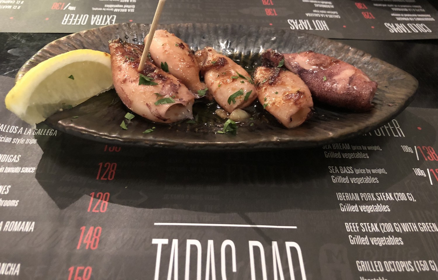 Every tapas plate was delicious. It’s also possible to order large meals – so far we’ve never made it past the tapas.