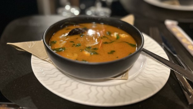 A lovely Sea Food Tom Yum soup. But expensive at €15 for non all-inclusive.