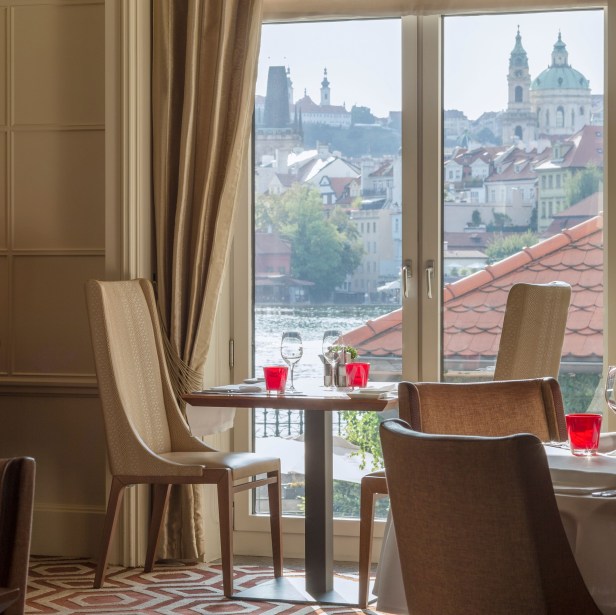 There are only two tables by a window with a view to St. Nicholas Church and Prague Castle. If you want the money shot then call ahead and ask for one of those.