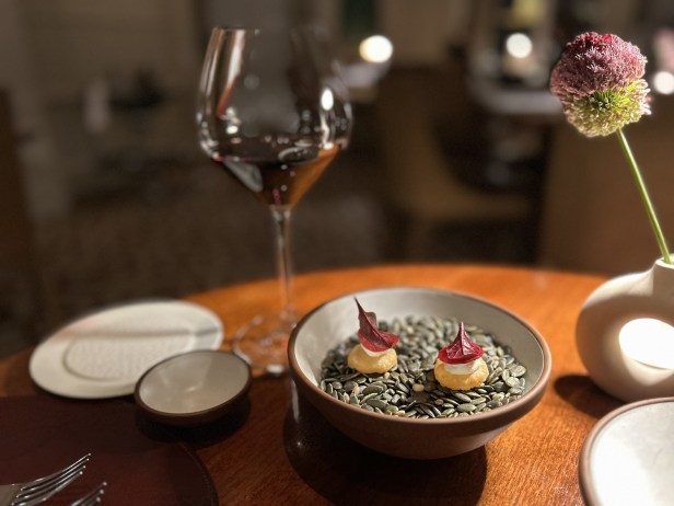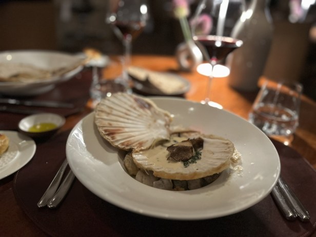 The Scallop ‘In The Shell’ En croûte with Vermouth Cream, Swiss Chard and Black Truffle was delicious, but also one of those ‘chef too far’ dishes. I half expected the scallop to be in pastry, but instead, ii was the entire shell. I’d be interested to hear from chefs, if baking scallops in the shell has any benefit, as I suspect it’s just a novelty, especially as the shell has to be opened before baking. We couldn’t taste the truffle.