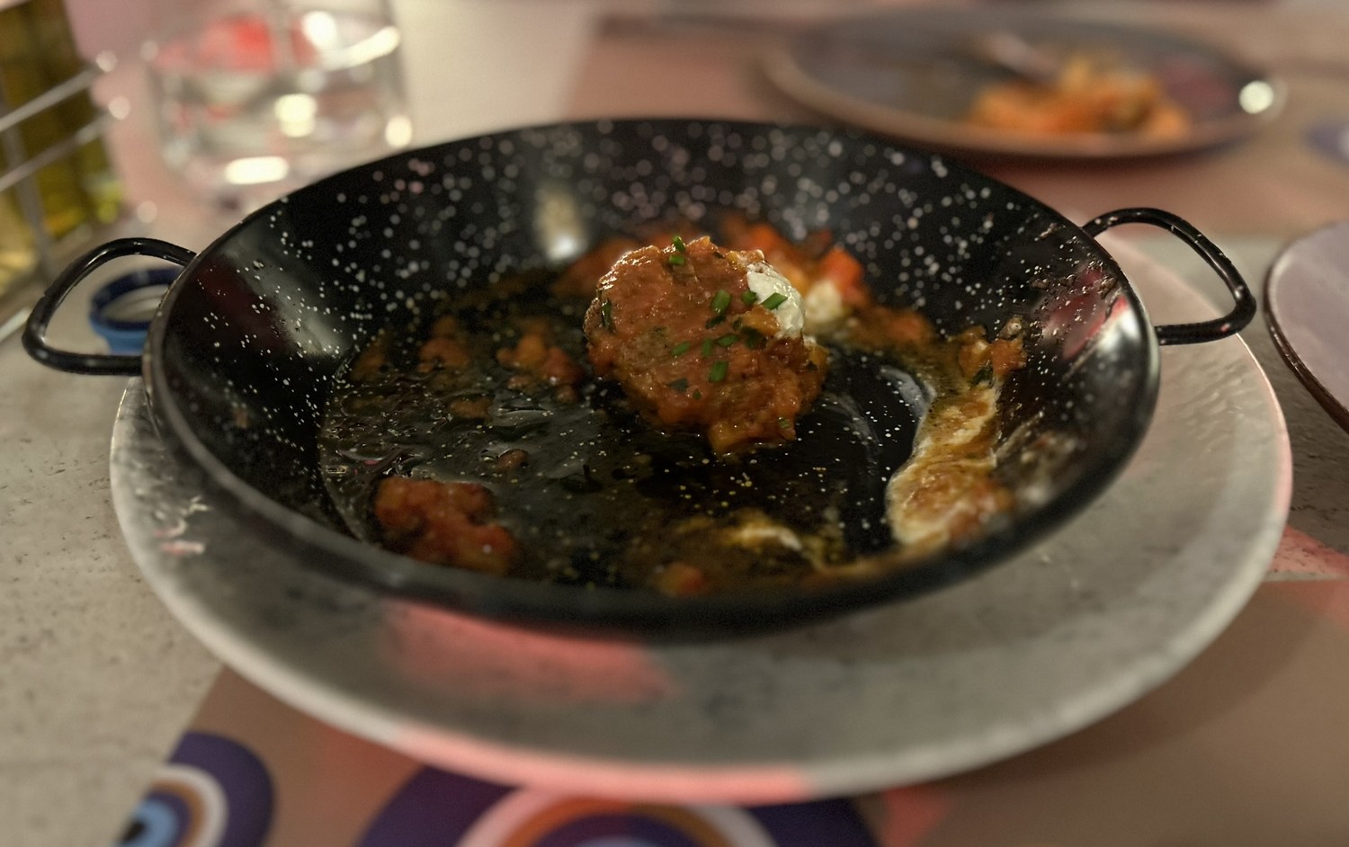 Keftedakia – beef meat balls, tomato sauce, Katiki Domokou cheese (290 Kč). These were so good that there was only one left when I remembered to take a picture.