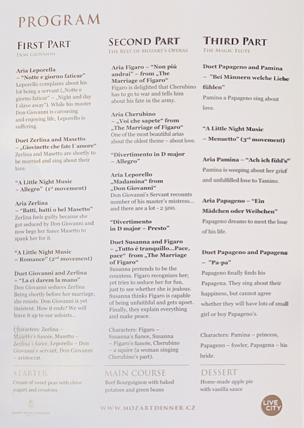 The Mozart Dinner, at the Grand Hotel Bohemia in Prague, is a perfect way to experience a little bit of opera in beautiful surroundings, accompanied by a three-course dinner and drinks.