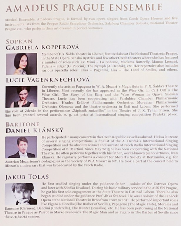 At 7pm, the lights dimmed and the first of three 20-minute performances began – a perfect duration for anyone who is worried they won’t endure over three hours of Don Giovanni. Despite the ‘opera-light’ package, the musician ensemble and performers are all excellent professionals and regulars at Prague’s National Theatre.