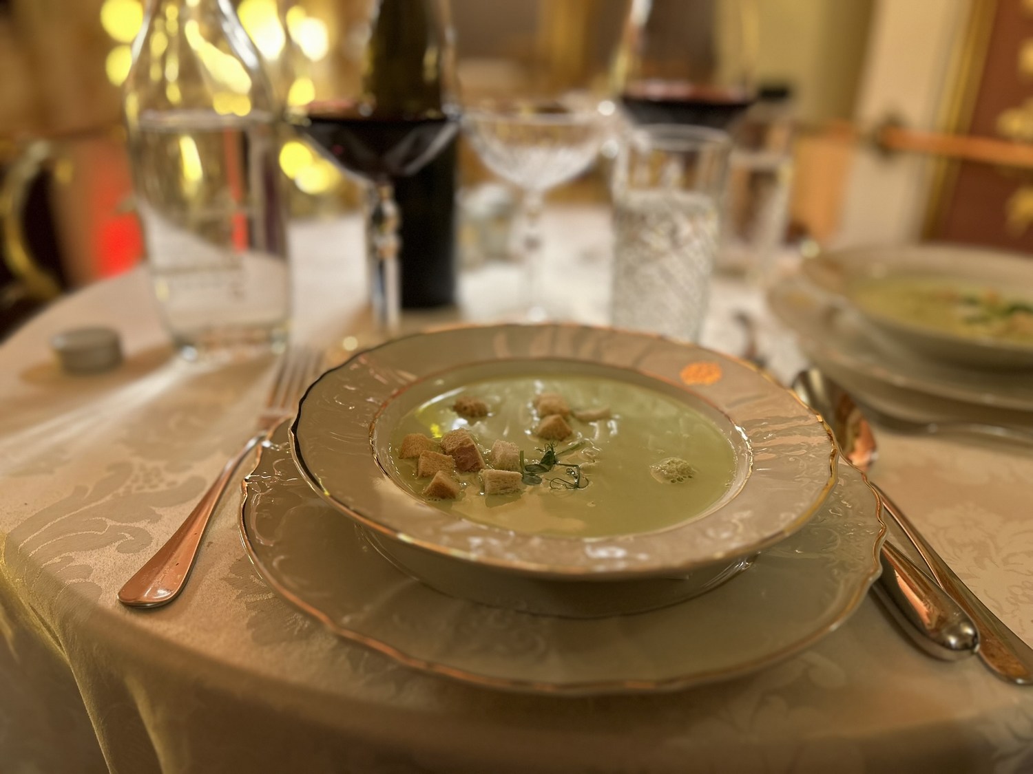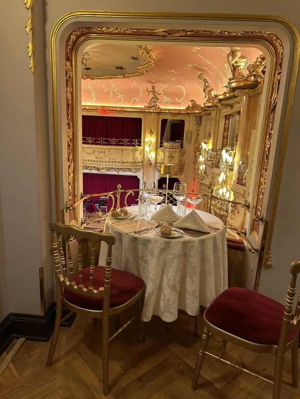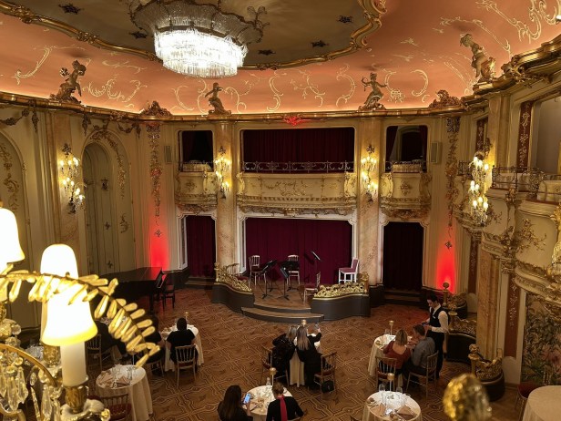 We arrived in the foyer of the Grand Hotel Bohemia at 6.30pm and made our way down to the stunning neo-Baroque Boccaccio Ballroom, where our box was waiting.