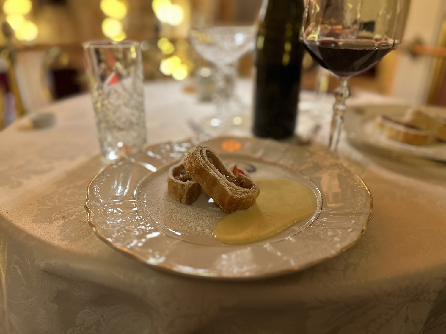 The final 20-minute performance was followed by rapturous applause and a dessert of apple strudel with vanilla sauce.