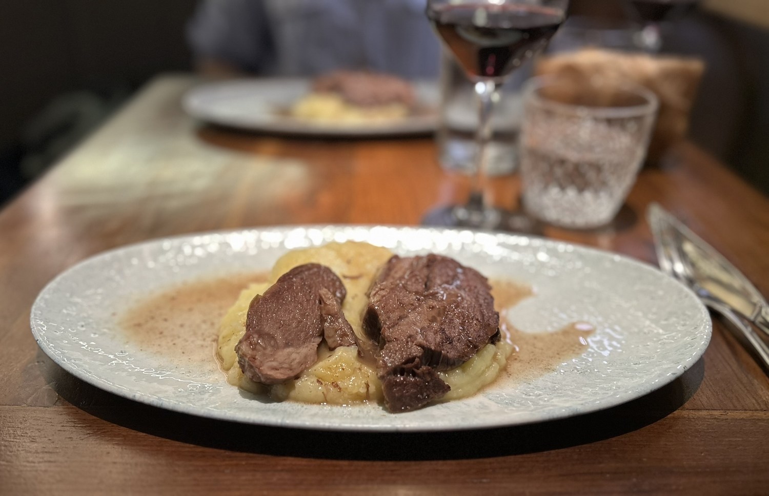 Delicious Veal Cheek in Red Wine with Mashed potatoes €18.00.
