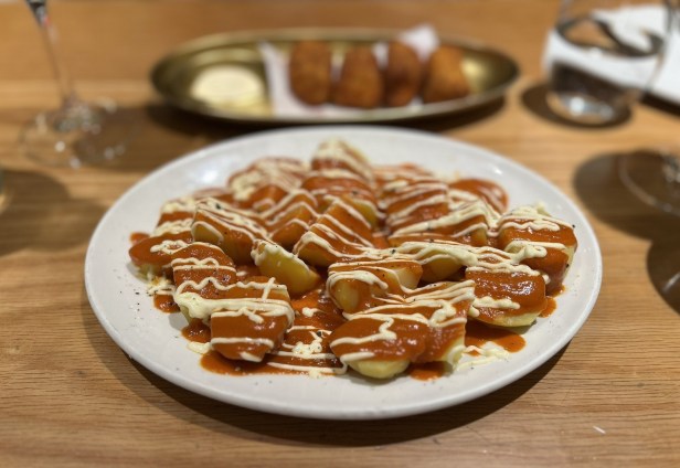 Patatas bravas with aioli and spicy sauce €6.00.