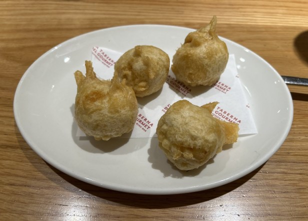 Four Buñuelos de bacalao (Cod Fritters) €14.00 (€3.50 each).