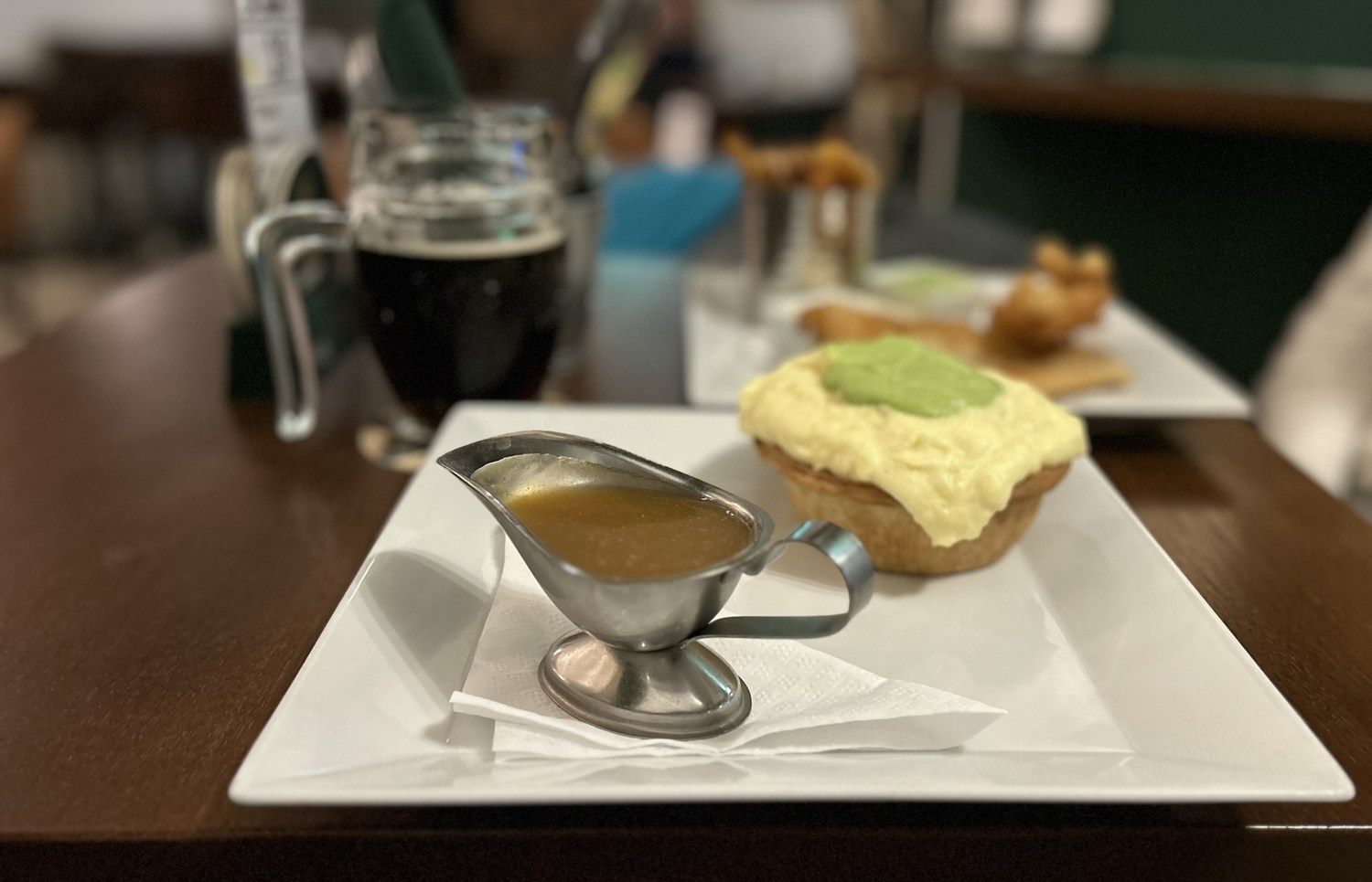 Next time, I’ll ask for the mash and mushy peas to be next to the pie.