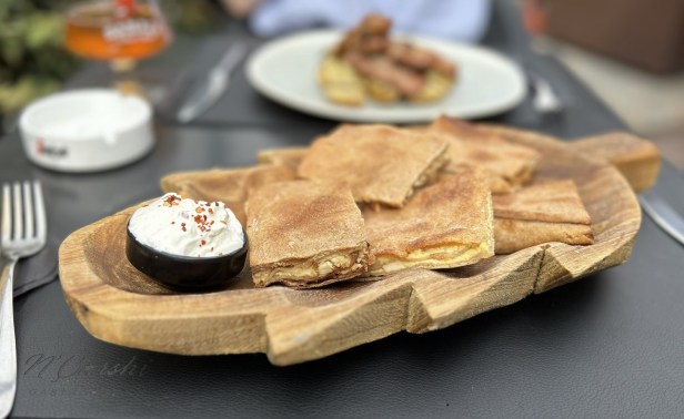 A classic Albanian pie (known as ‘byrek’ or ‘pite’) 680 Lek. With several layers of pastry and with two different fillings, these were really tasty.