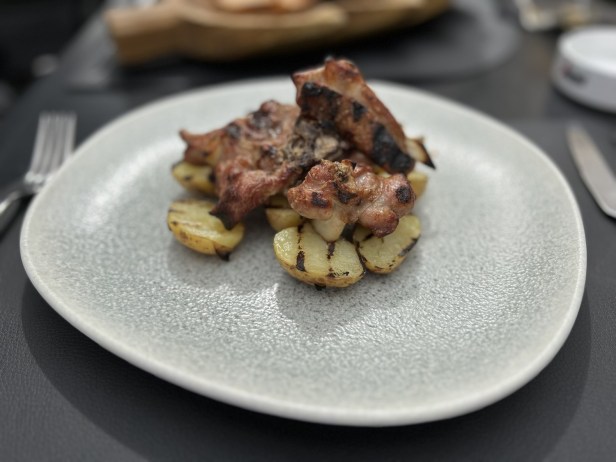 Lamb chops with grilled potatoes 1200 Lek. Delicious.