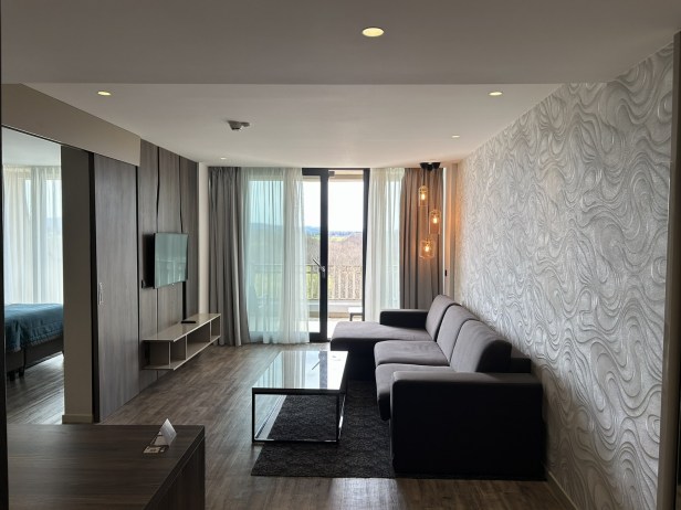 The sofa in the room can be converted into a bed. The door between the sitting room and bedroom can be closed. The suite is ideal for families or couples who like to sleep apart.