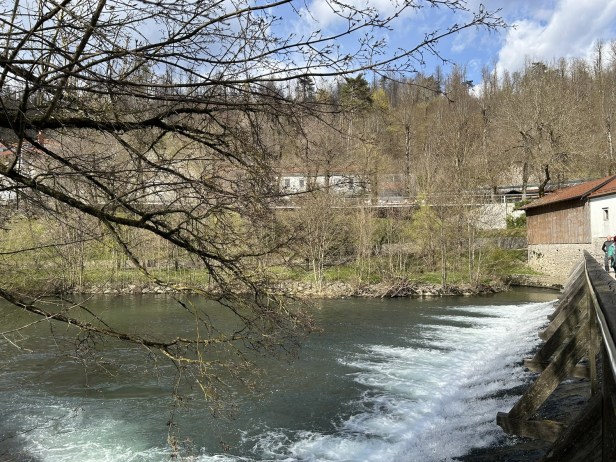The train station is too far to walk (2km) with luggage, we took a taxi €10 for the five-minute ride. A first class ticket to Ljubliana was €7.70 and the journey took just one hour.