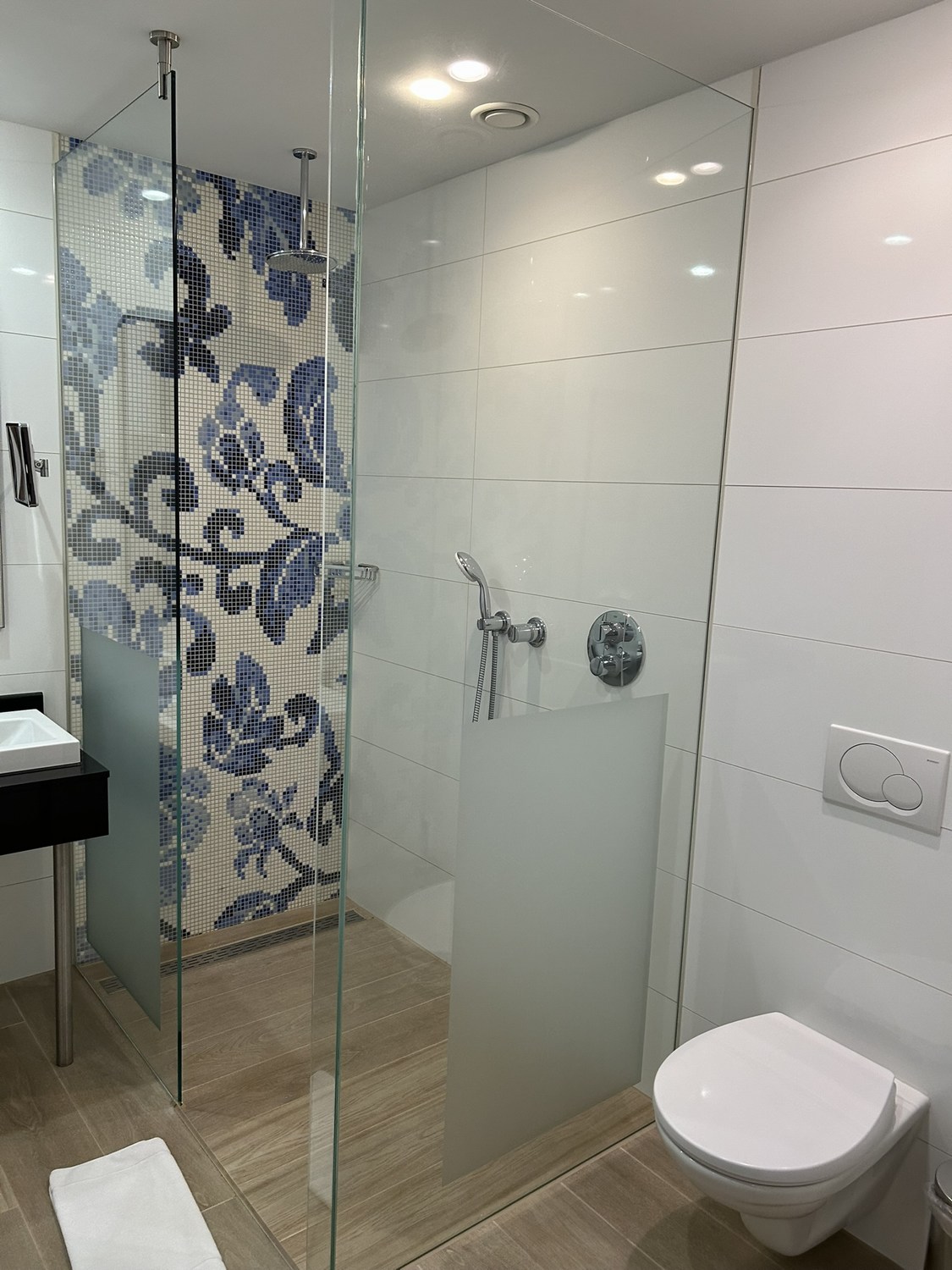 The TV had plenty of channels and, as is this is The Netherlands, most US shows were in English. There was a nicely-positioned safe. I would have liked some USB sockets.