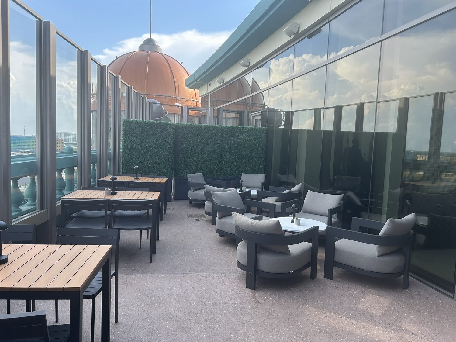 Bar Helios is a lovely bar, with great views over the Universal Epic Universe park in Florida. It isn’t busy as most visitors to the park don’t realise they can visit.