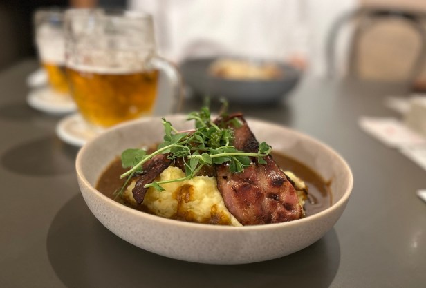 Also delicious: Pork cheeks Burgundian style with red wine and vegetables, mashed potatoes with nutmeg, sautéed mushrooms, roasted vegetables, bacon chips 329 Kč,