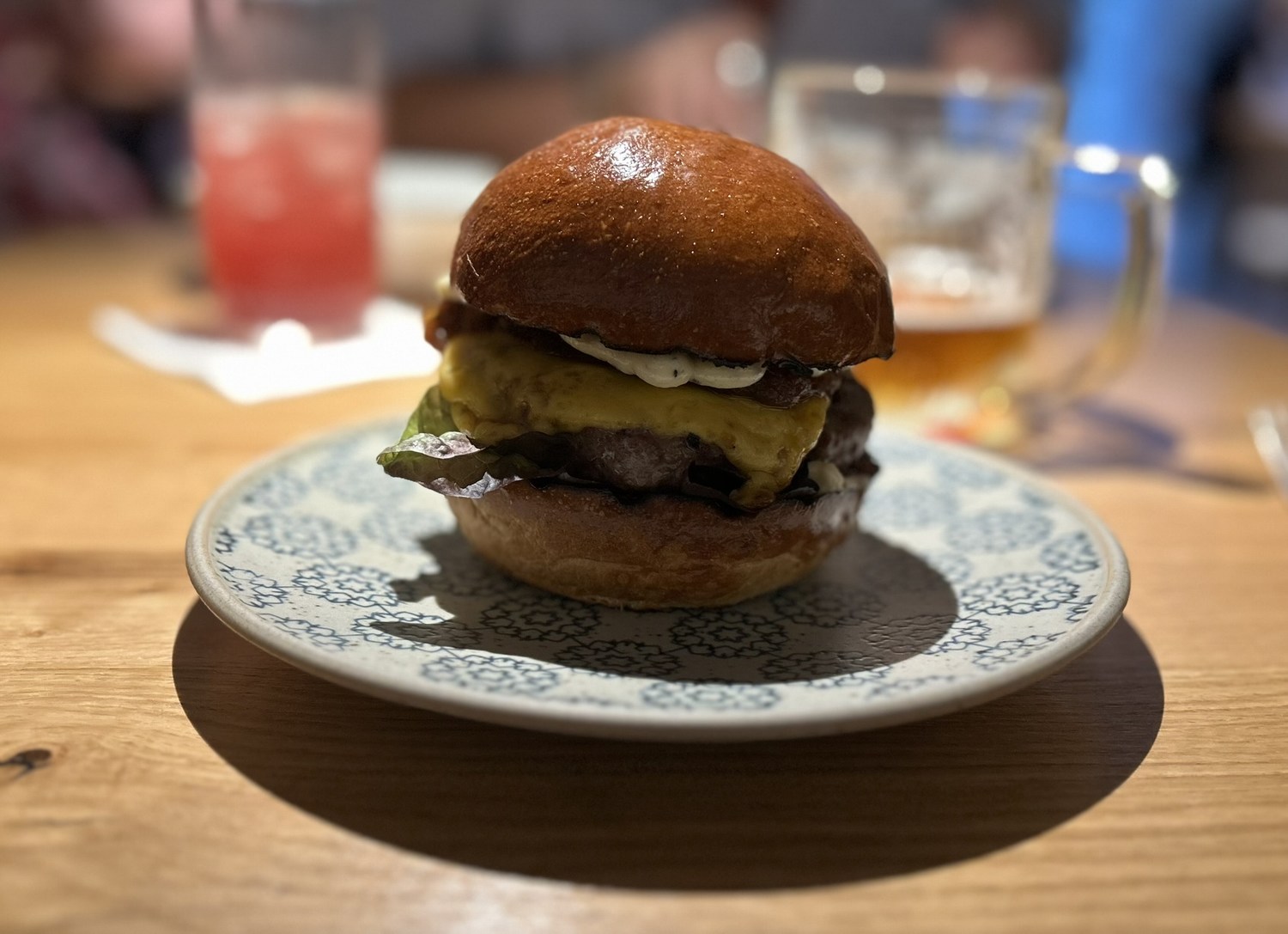 The matured beef burger, bacon jam, cheddar, truffle mayonnaise, salad, pickled cucumber (375 Kč) is on a par with some of the best burgers in Prague.