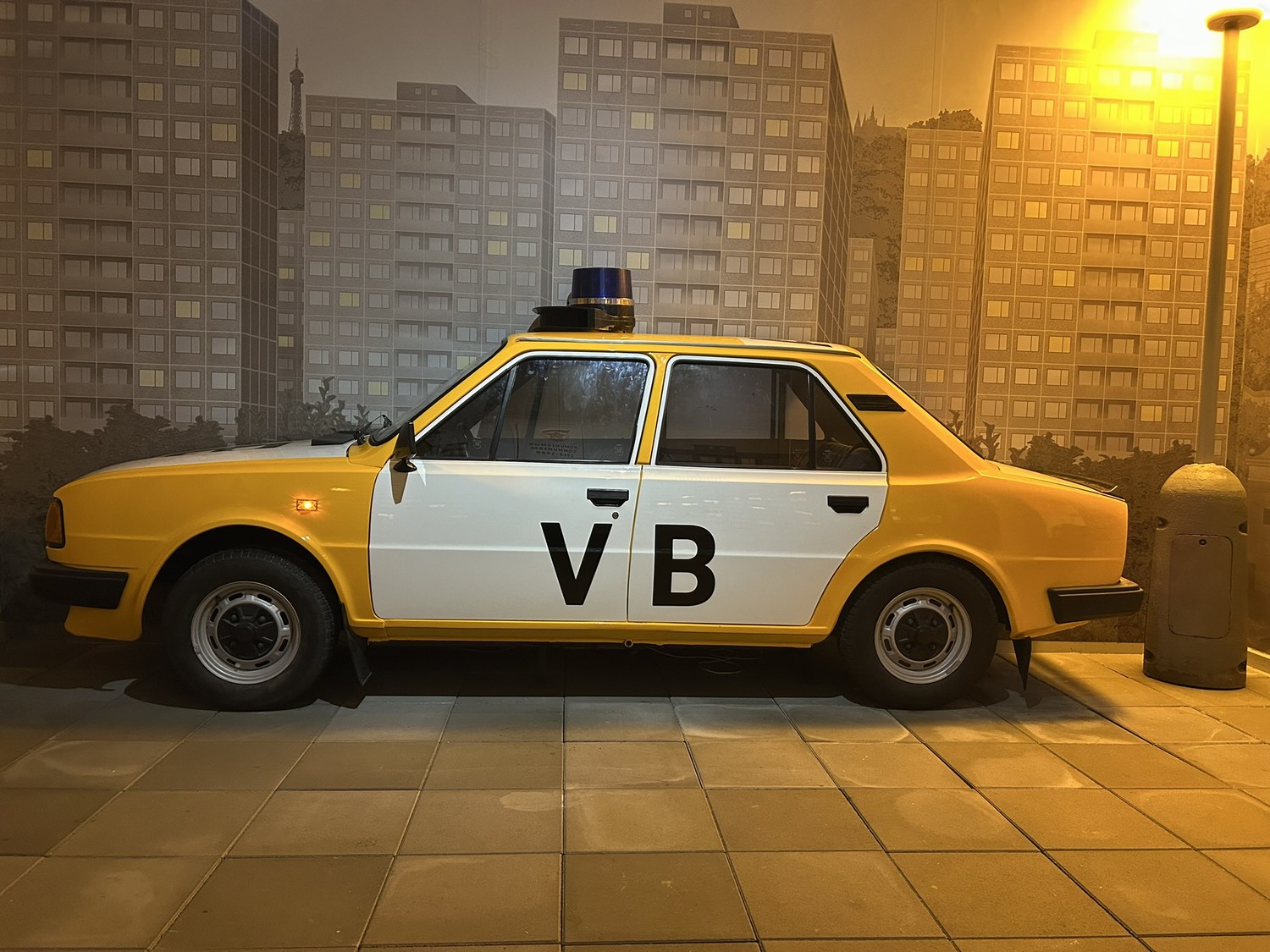 A classic communist police car. The VB stands for veřejná bezpečnost (public security).