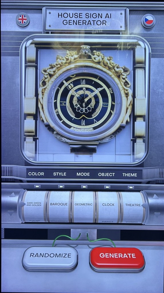 We then found an interactive machine where we could design a house sign, similar to those found on the façades of hundreds of Prague buildings.
