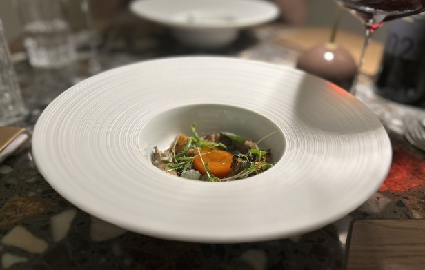 I do appreciate the effort that is made by a sommelier when pairing wines with dishes, although I sometimes think they play it a little too safe, pairing mostly white wines, so not to overwhelm the food. We prefer red and so went for a trusty bottle of 2021 Chianti Classico Riserva DOCG, Rocca Delle Macie, Tuscany (2000 Kč). Let’s hope that wasn’t the equivalent of asking for ketchup!