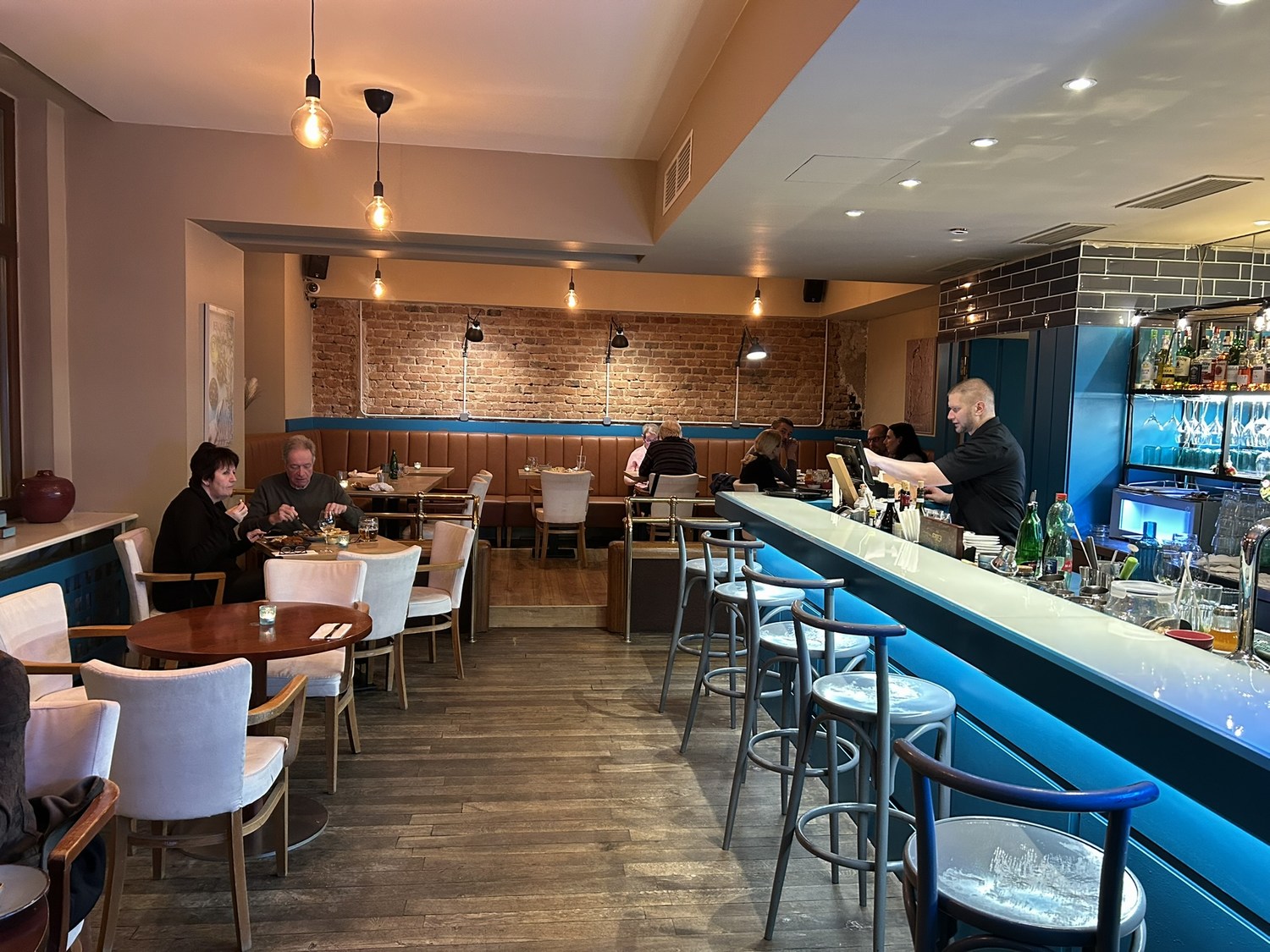 The place was full when we arrived. The restaurant is quite small, but there are also tables in the bar. I took the following pictures when we left at 19.30 so looks like everyone had the same idea as us.