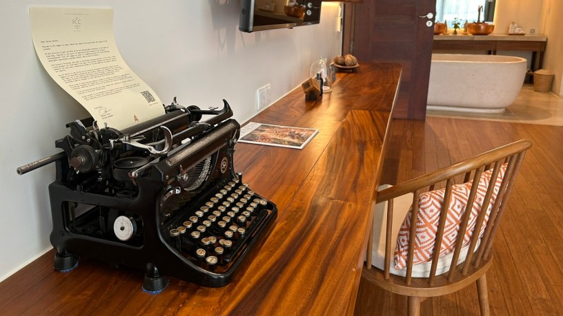 The decor is themed to reflect the Foreign Correspondents’ Club, so old radios, old telephones and an old typewriter. The original FCC in Phnom Penh closed for renovations in 2018 and is yet to re-open. Please watch the video above to see the entire suite.