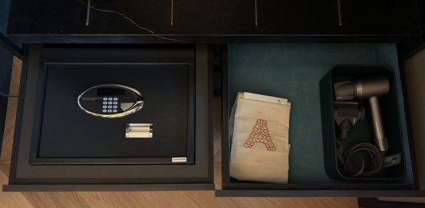 The large safe is in a pull-out drawer. One of the nicest in-room safes we’ve seen.