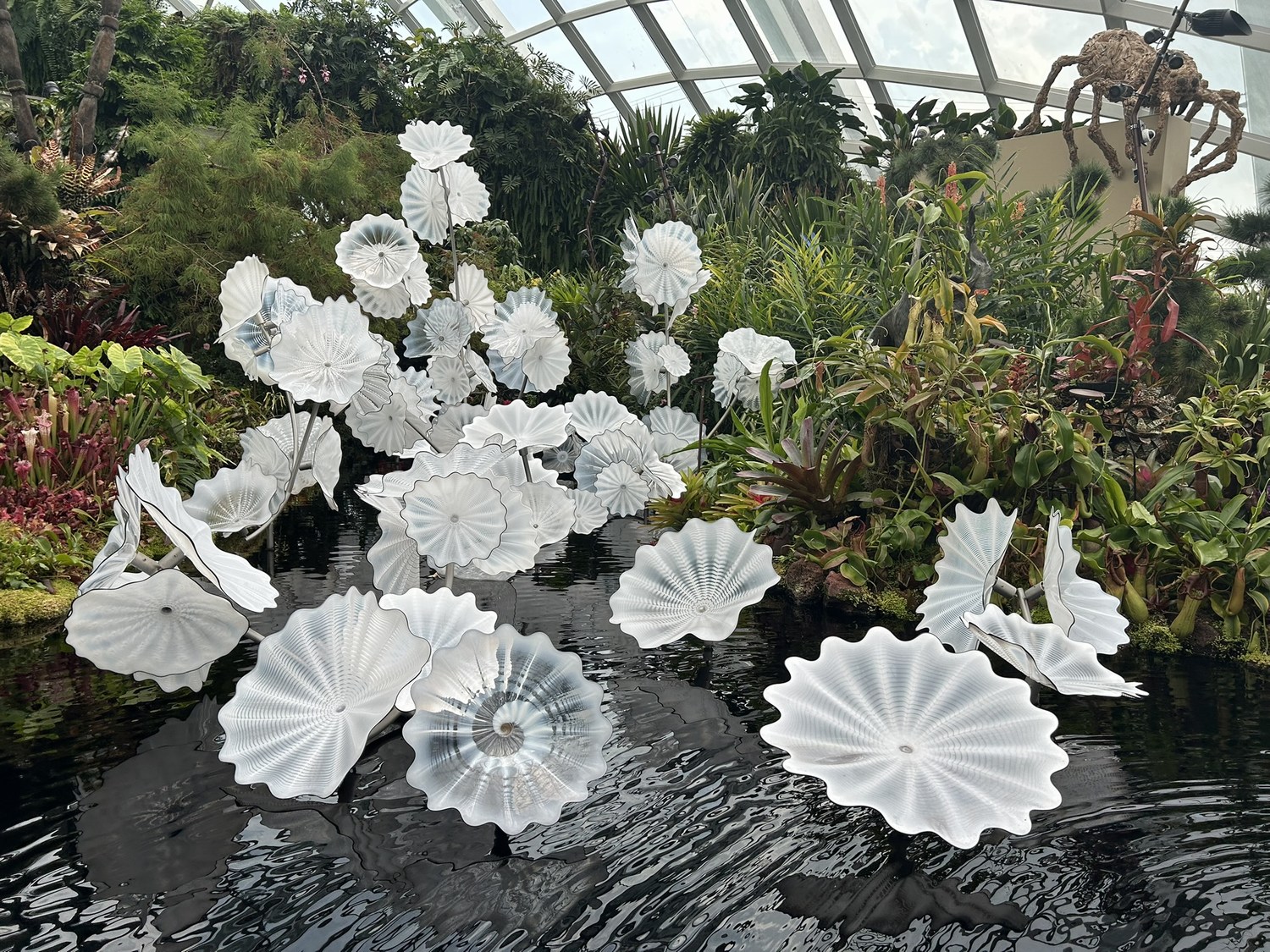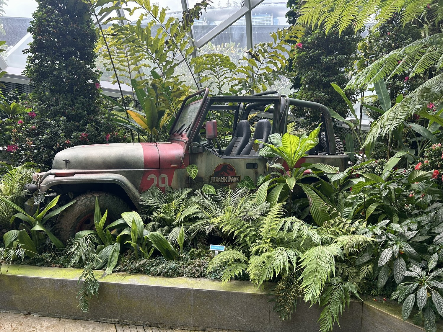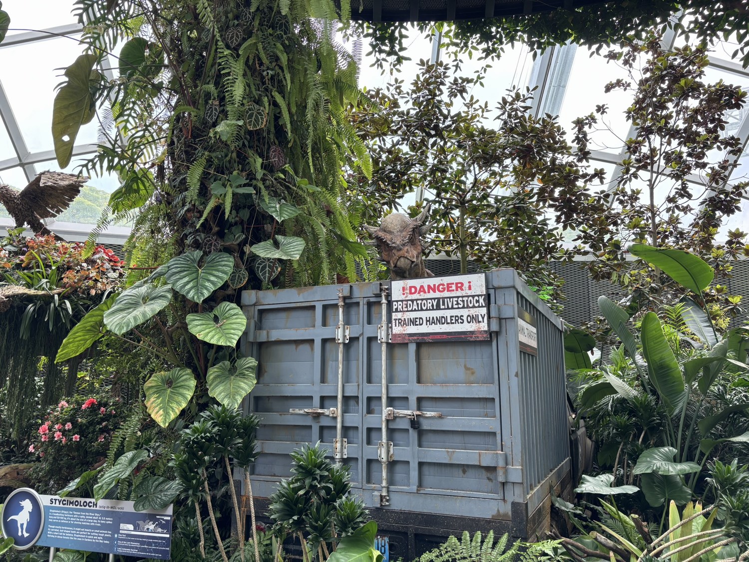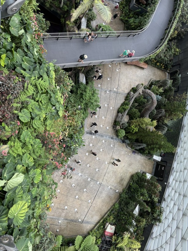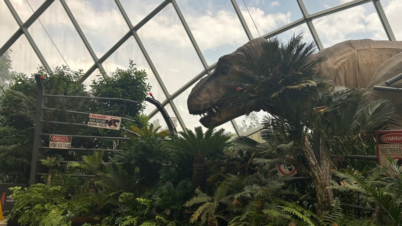 The sheer scale of the dome, the cascading waterfall, and the elevated walkways is already incredible — but with the Jurassic World installations added, the whole experience feels completely supercharged.