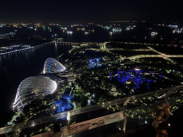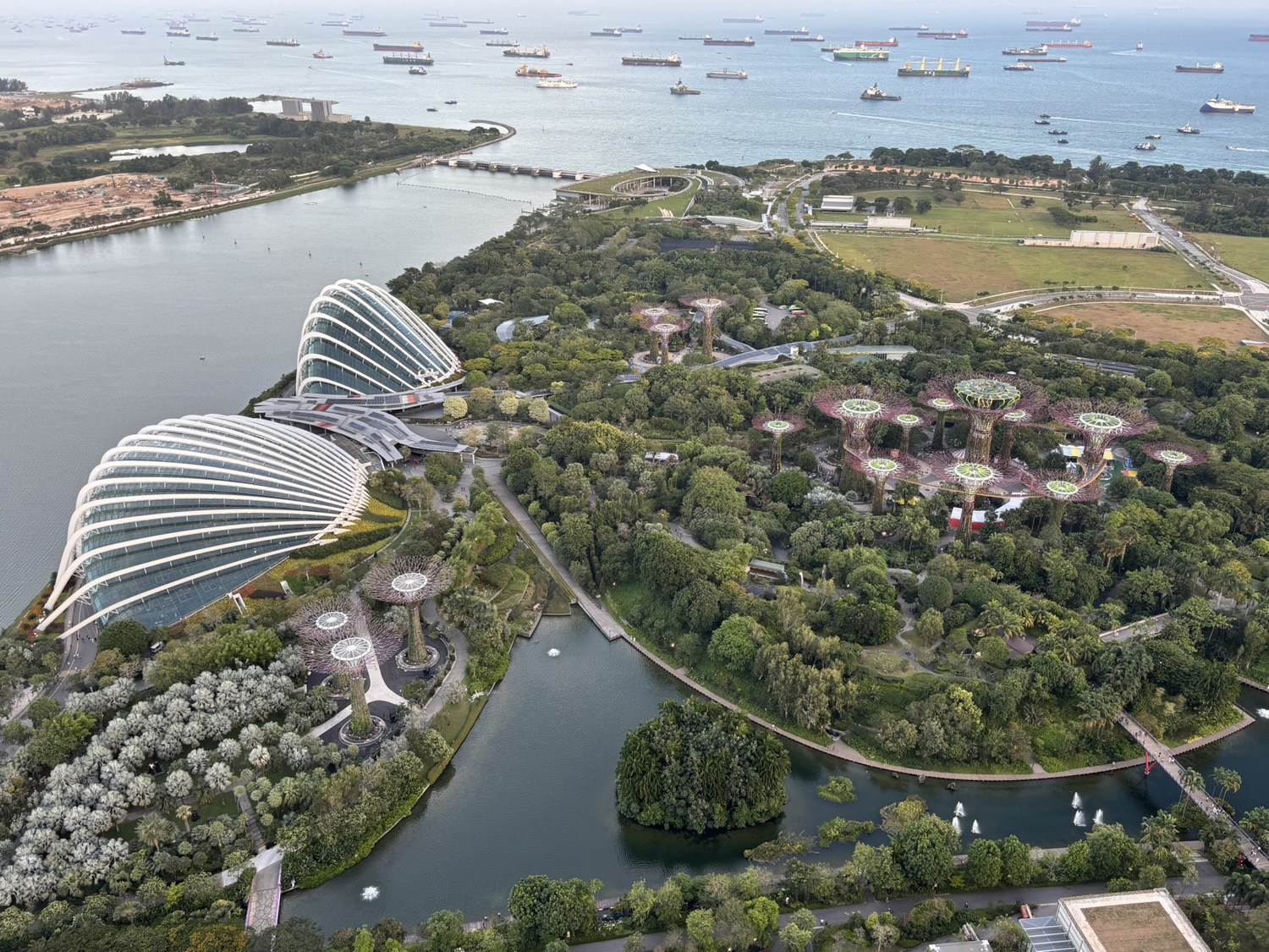 Here you can see the Gardens by the Bay domes, the Supertree Grove and the hundreds of container ships at sea.