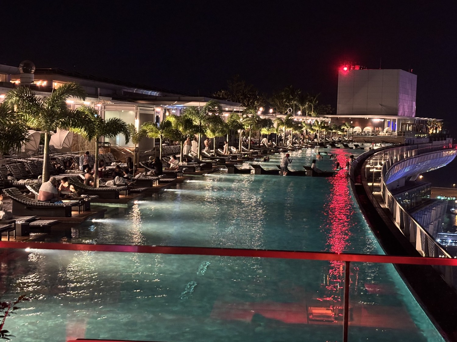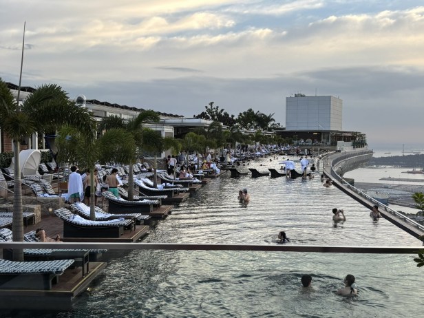 It’s possible to wander round to another bar area and that has a direct view to the famous infinity pool (hotel guests only).