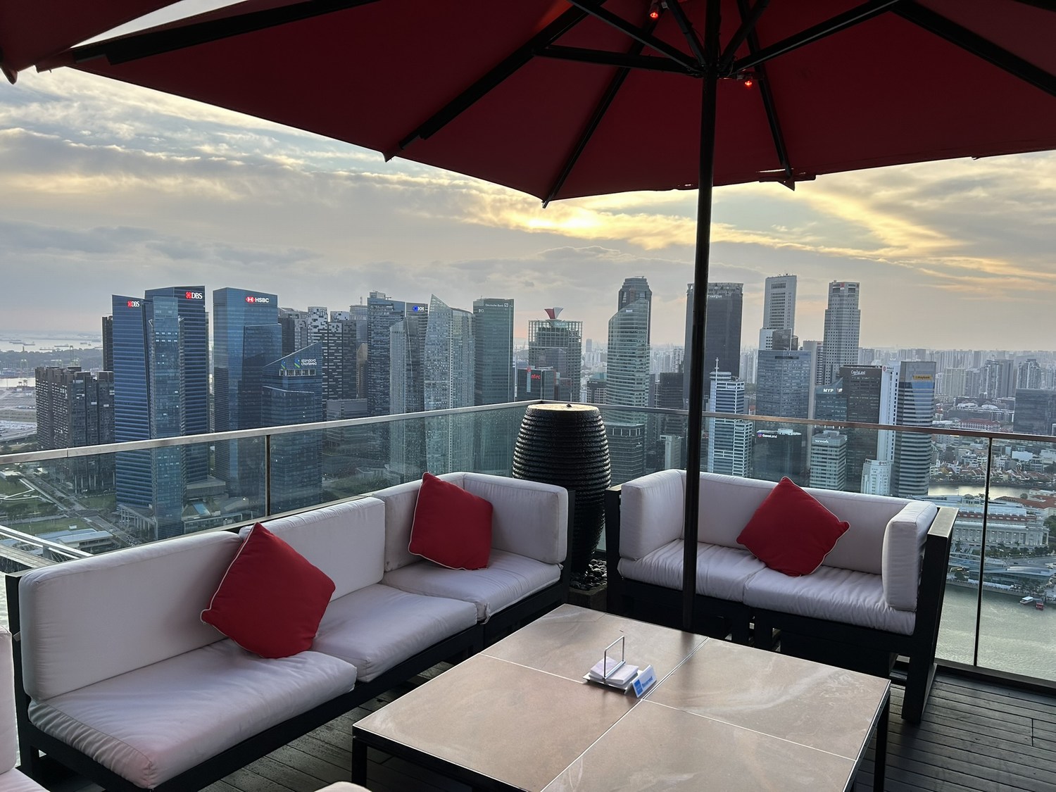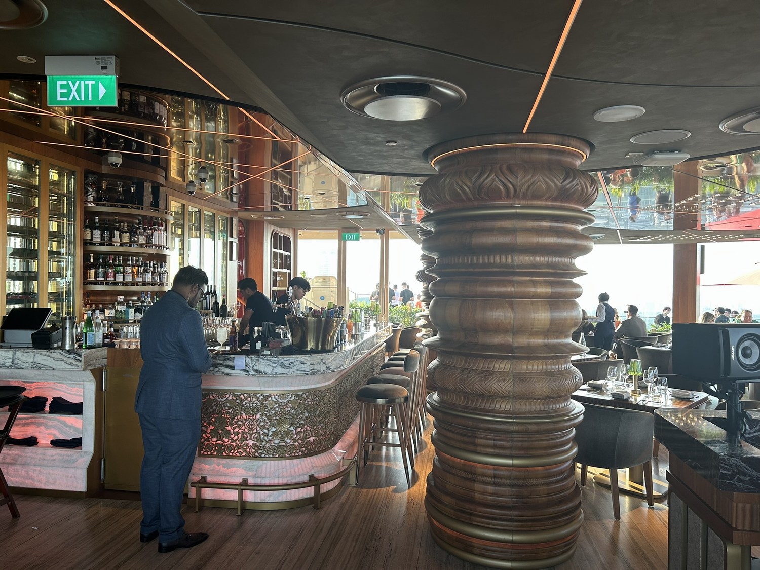 It’s possible to visit the bar area for S$38 and that includes one drink. That’s much better value than the observation deck on the floor below. Restaurant table bookings require a minimum spend of S$50 per guest and that represents even better value as you have a seat.