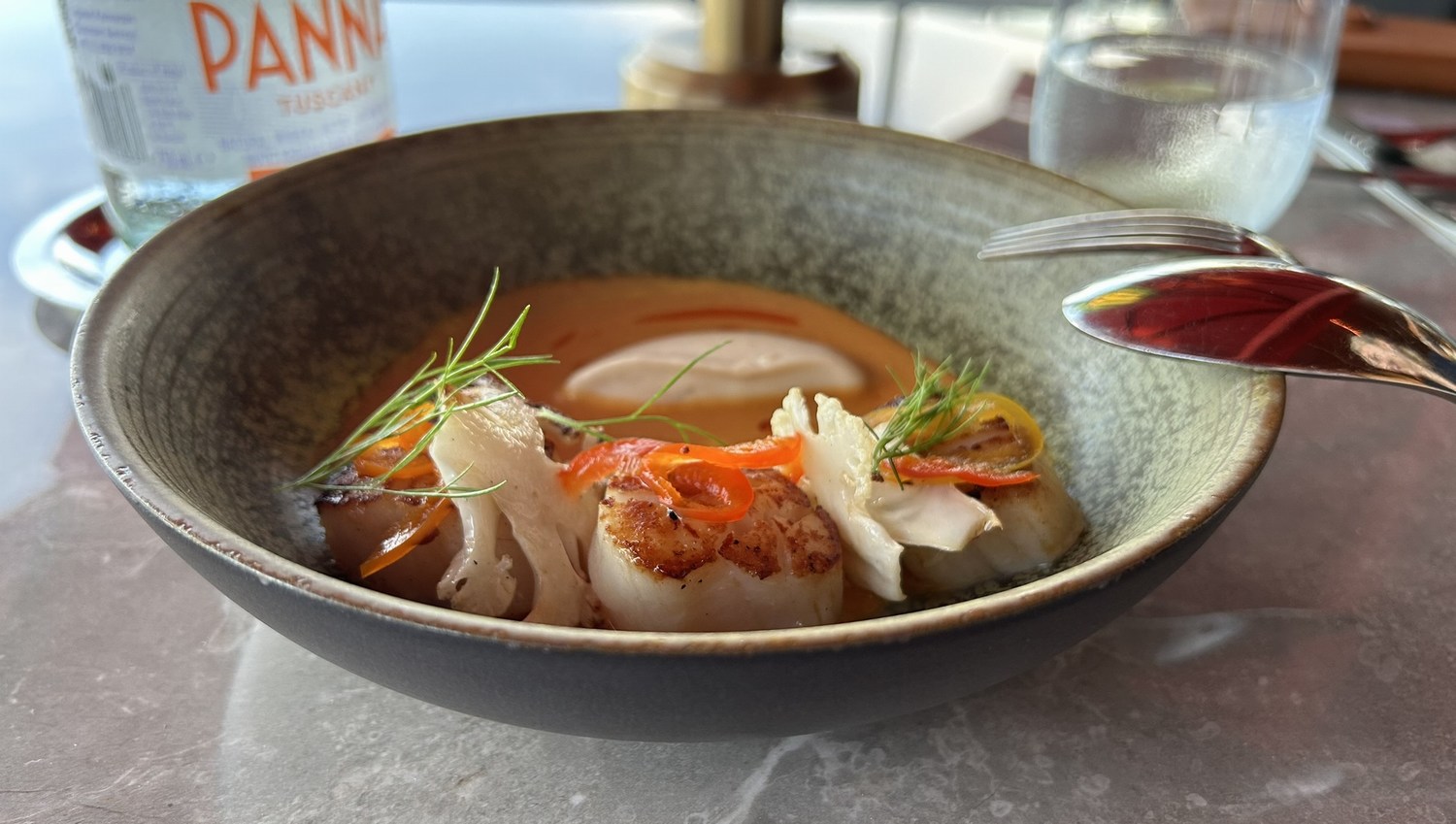 The pan-seared scallops (S$38) were delicious and perfectly cooked.