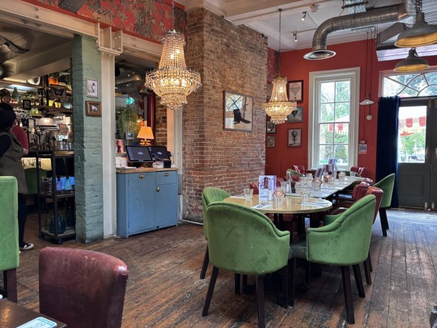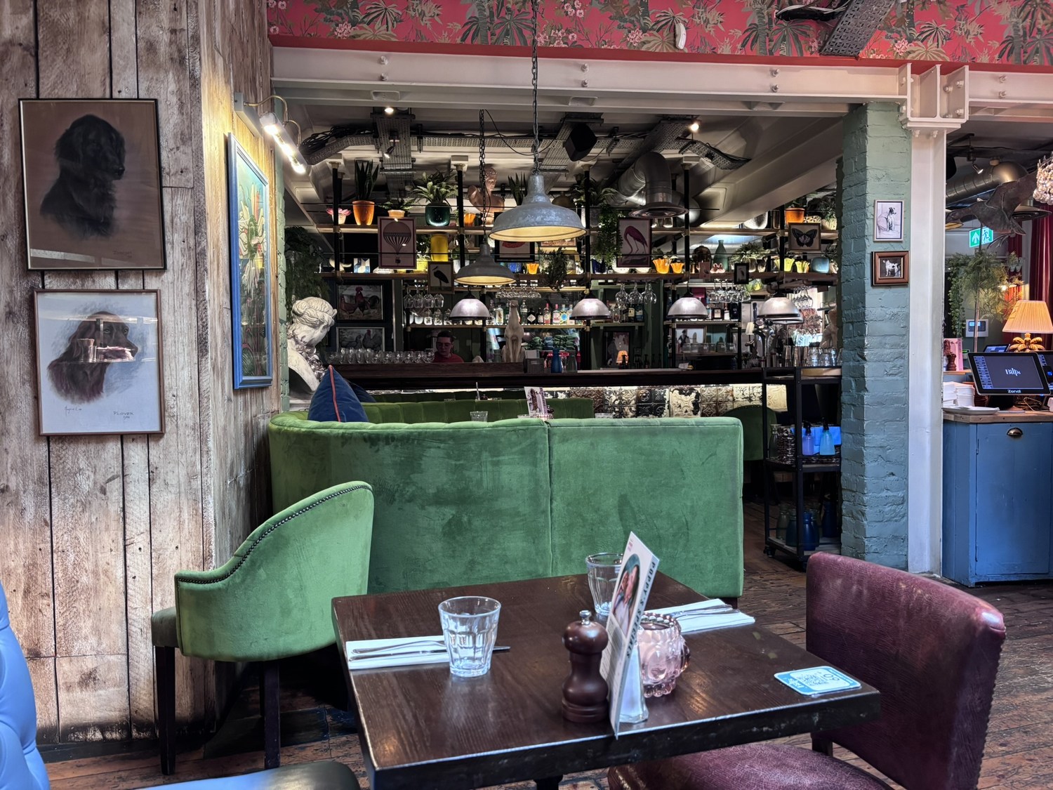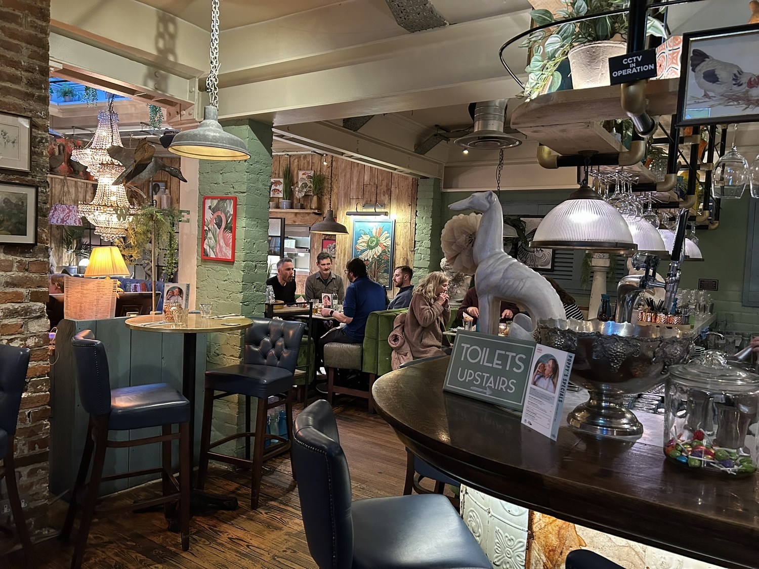 The interior is cosy and eclectic.
